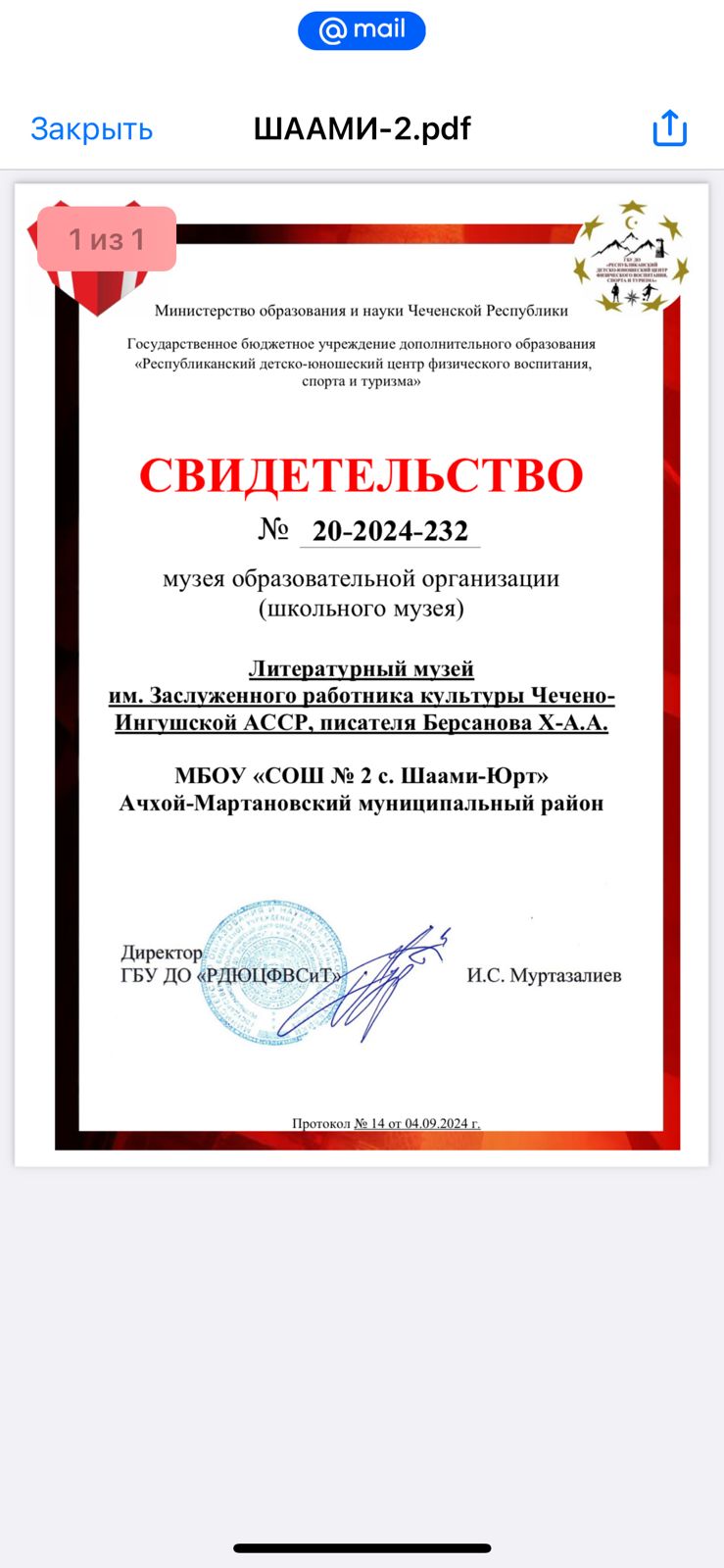 Школьный музейДокументы