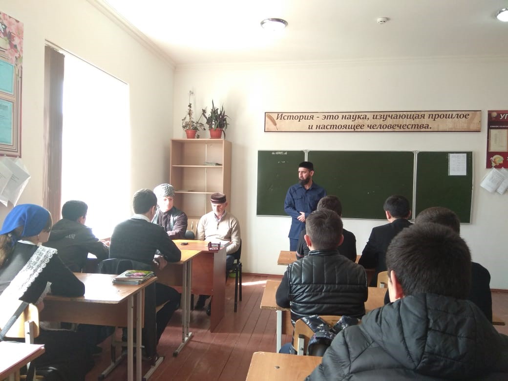 14.03.202014.03.2020г. в МБОУ «СОШ №2 с. Шаами-Юрт» старейшины села Велидов Ваха и Чабаев Альви провели беседу