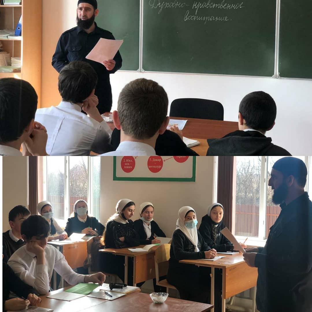 Педагог-организатор по ДНВ Муртазалиев А.С. провел беседу по духовно-нравственному воспитанию с учащимися 8 класса.