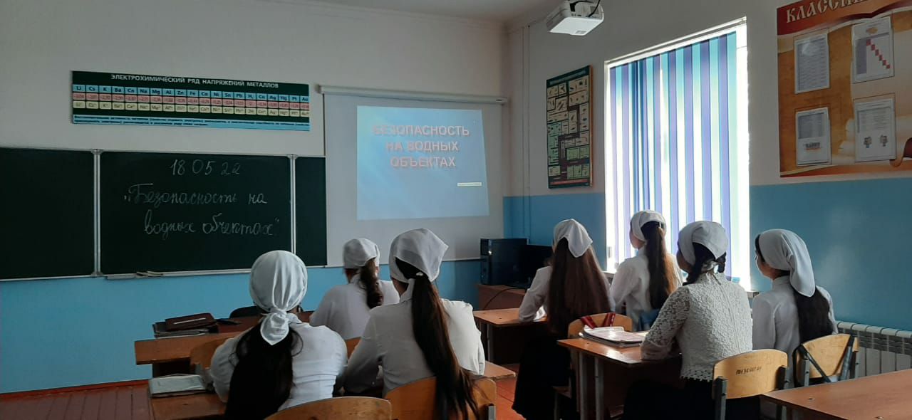 23.05.2022Во исполнение писем МОиН ЧР от 19.04.2022 года, /753/07-42 и Администрации Ачхой-Мартановского района от11.05.2022 года /1651 "О реализации межведомственного плана безопасности и охране жизни людей в летний купальный сезон 2022 года на водных объектах Чеченской Республики" в МБОУ "СОШ 2 с.ШААМИ-ЮРТ" провели классные часы на тему " Безопасность на водных объектах "