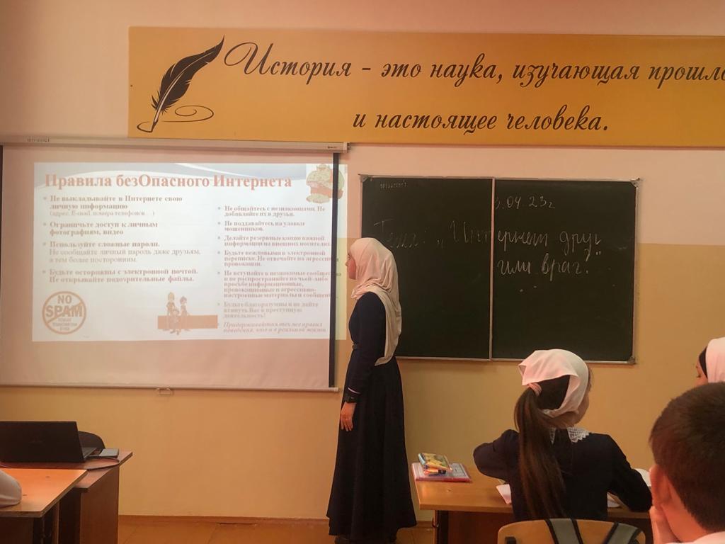 03.04.2023В связи с участившимися случаями противоправного и аутоагрессивного поведения среди подростков в МБОУ СОШ 2 села Шаами-Юрт социальный педагог совместно с администрацией школы провела беседу с учащимся школы. Беседа прошла в формате позитивного контента. Ребята активно поддерживали беседу, подчеркивали, как важно беречь не только своё, но и чужое имущество. Также отметили, насколько это важно оберегать себя и своих друзей от всякого рода противоправного поведения. Таким образом, посредством такой конструктивной беседы были актуализированы общечеловеческие ценности.