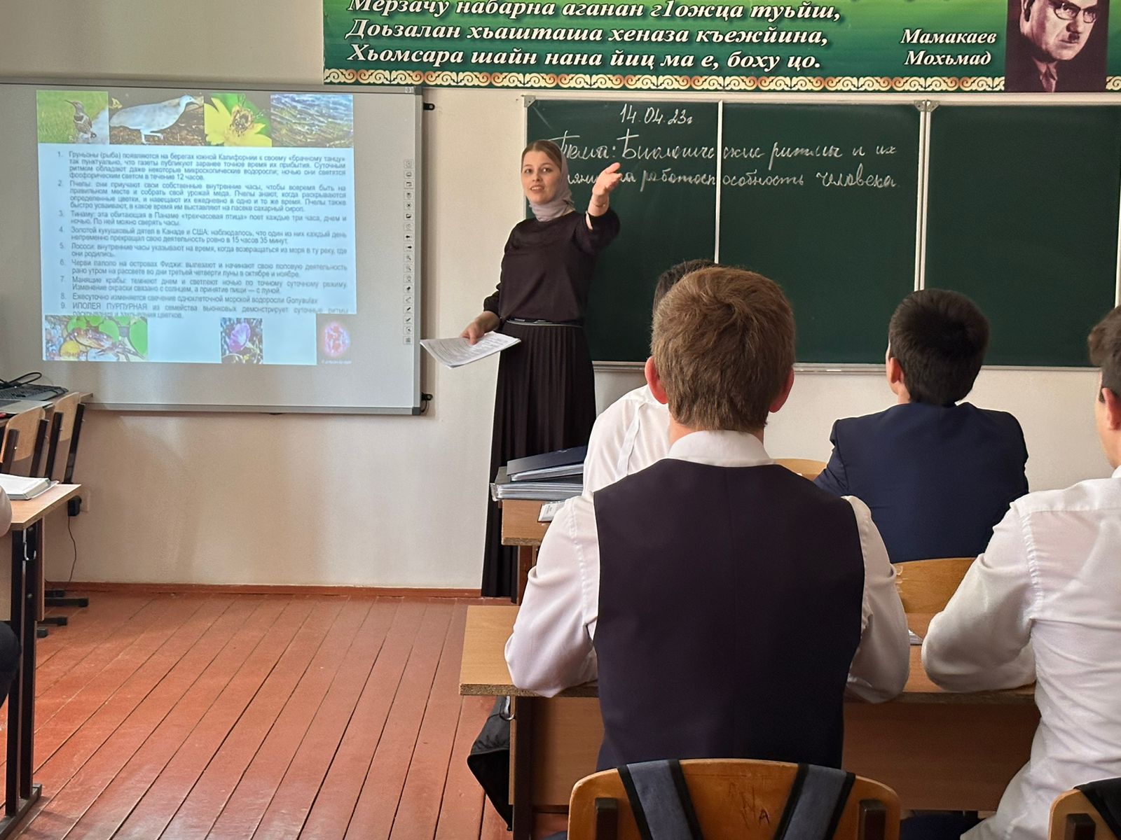 27.04.2023В МБОУ СОШ №2 с. Шаами-Юрт с 13.04.23 по 27.04.23г учитель ОБЖ Юсупова Л.А. в 8-11-х классах провела открытые уроки на темы: «Вредные привычки и их последствия», «Биологические ритмы и их влияние на работоспособность человека», «Обязательная и добровольная подготовка граждан к военной службе».