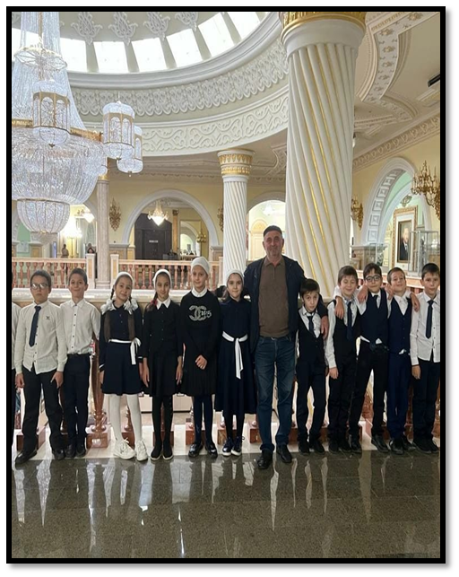 «МБОУ « СОШ № 2 с.Шааами-Юрт» организовали экскурсию по музею. В октябре 4 класс вместе с классным руководителем Багаевой Э.З.посетили музей им. А-Х Кадырова в рамках программы, направленной на увеличение роста посещаемости культурных учреждений в целях воспитания поколения, которая будет ценить и уважать свою историю и культуру. Детей встретила доброжелательная работница музея и начала экскурсию. В ходе экскурсии дети с удовольствием слушали лектора , которая в подробностях рассказала много интересного о жизни и деятельности Первого Президента Чеченской Республики, Героя России Ахмат-Хаджи Кадырова Экскурсия открыла детям глаза на то, что сделал Ахмат-Хаджи Кадыров для Чеченской Республики и для России..Дети были рады экскурсии и изъявили желание вновь побывать в музее имени А-Х.Кадырова «Особенно понравился детям зал. Ребята получили огромное удовольствие и массу ярких впечатлений от данной экскурсии у детей развивается интерес к истории своего народа, происходит воспитание патриотизма и уважения к историческому прошлому. И это всё эмоционально, умело привлекая наглядный материал, донесла до ребят экскурсовод»,-добавила она.