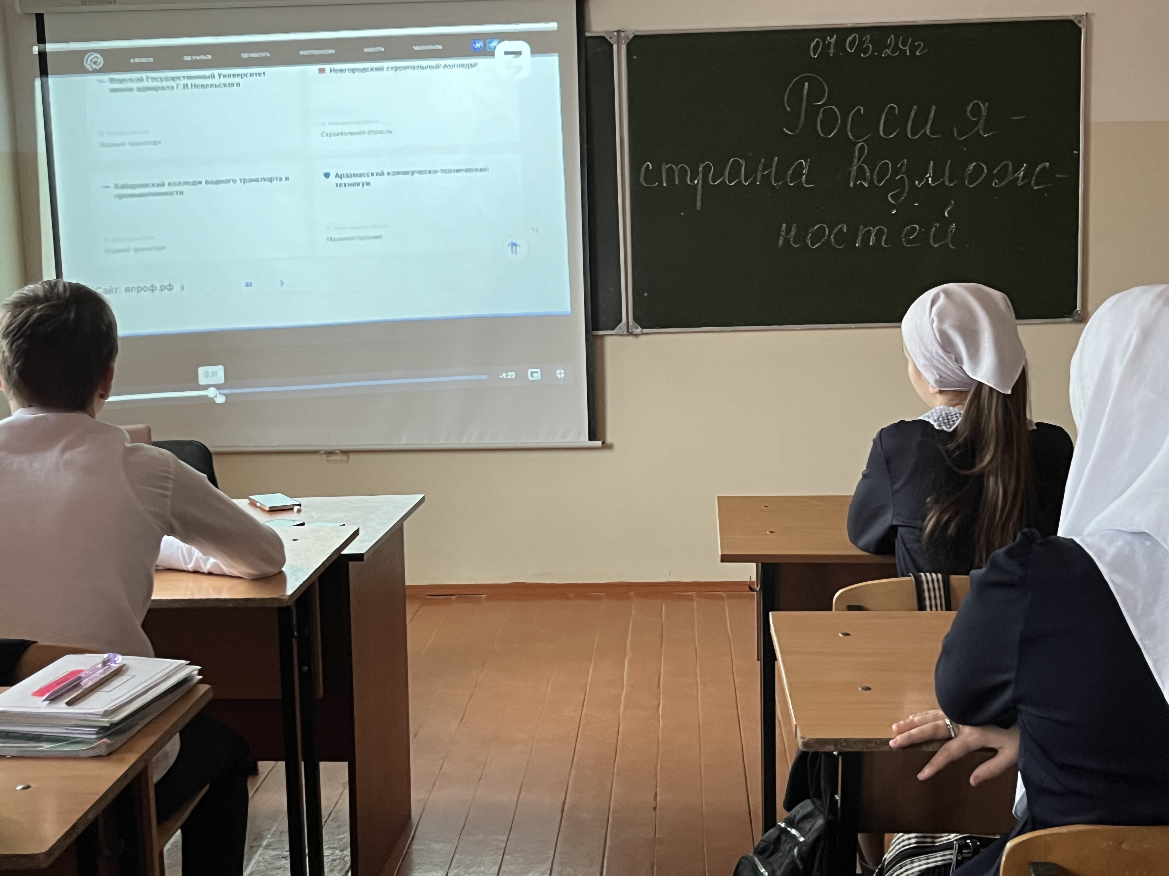 08.03.20247 марта в МБОУ «СОШ 2 с.Шаами-Юрт» для обучающихся 6-11 классов в рамках профминимума "Россия - мои горизонты" прошли занятия на тему «Россия – страна возможностей». В рамках занятия ученики познакомились с большим выбором возможных образовательных путей после окончания школы. Узнали о государственных проектах и образовательных центрах, о широких возможностях каждому развивать свои таланты и выбирать своё профессиональное будущее. Ребята рассмотрели не только географические и культурные особенности нашей Родины, но и освоили ключевые отрасли экономики, рассмотрели возможности обучения и развития в нашей стране.