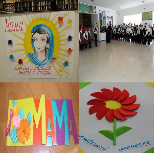 Ко Дню матери во всех классах были оформлены тематические наглядные стенды и проведены праздничные мероприятия, посвящённые Дню матери. Учащиеся и учителя качественно подготовили праздники, на которых присутствовали и принимали активное участие приглашённые мамы.