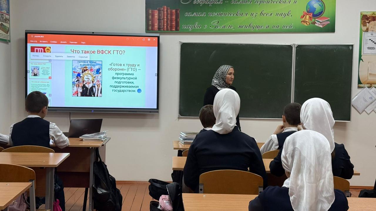 14.11.2025В МБОУ «СОШ № 2 с.Шаами – Юрт» в рамках Акции в школе была проведена общешкольная линейка «Нормативы ГТО». Цель акции – мотивация обучающихся к физической активности и приобщению к здоровому образу жизни, продвижения системы ВФСК «ГТО» среди детей школьного возраста. Урок ГТО – это возможность напомнить обучающимся о здоровом образе жизни, информировать их об основных положениях комплекса ГТО, сроках выполнения государственных требований комплекса, видах испытаний (тестов), порядке проведения тестирования, значимости наличия спортивного разряда при подведении итогов тестирования и награждении знаками отличия комплекса