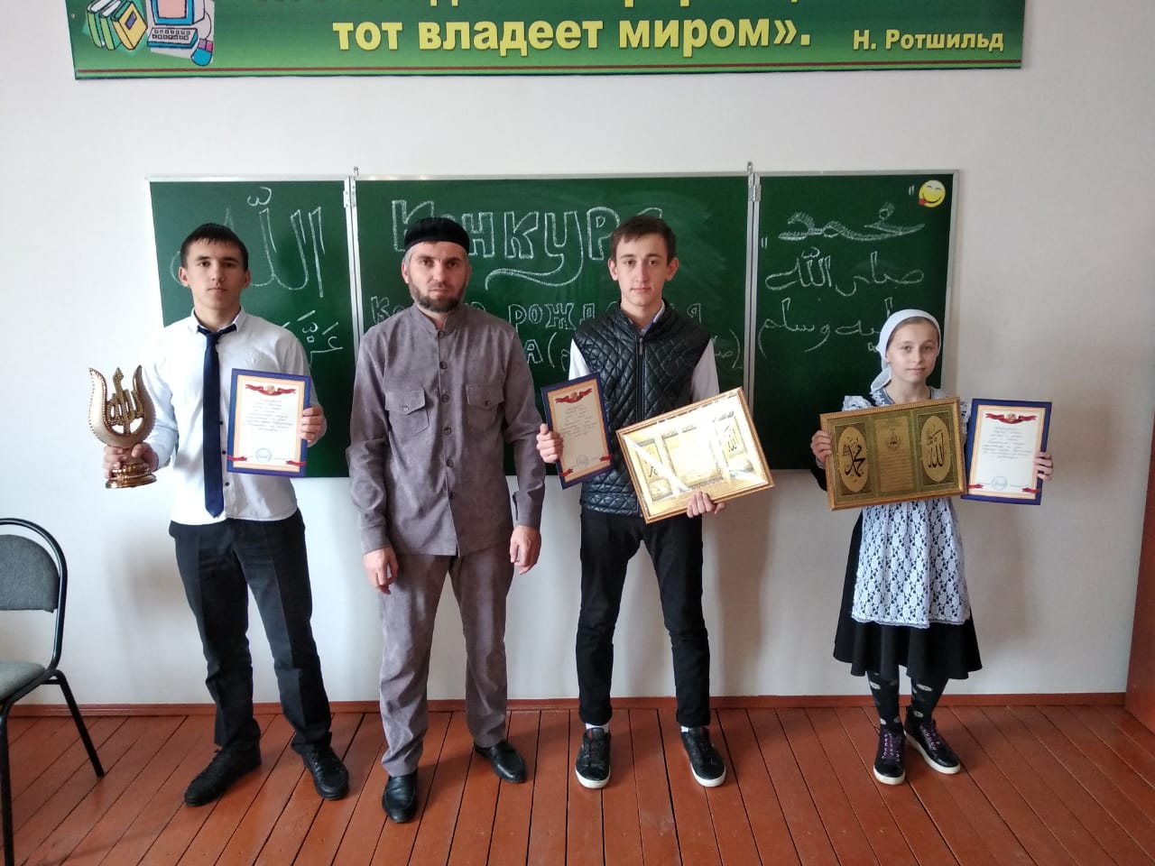 Первое место занял ученик 9 класса Цокаев Ибрагим, второе место заняла ученица 5 класса Юсупова Раяна, и третье место занял учащийся 9 класса Шахбиев Ислам. Отрадно было наблюдать, что конкурсанты хорошо подготовились и показали хорошие знания о жизнедеятельности пророка Мухьаммада (да благословит Его Аллах и приветствует). Ученикам были вручены заслуженные подарки и грамоты.